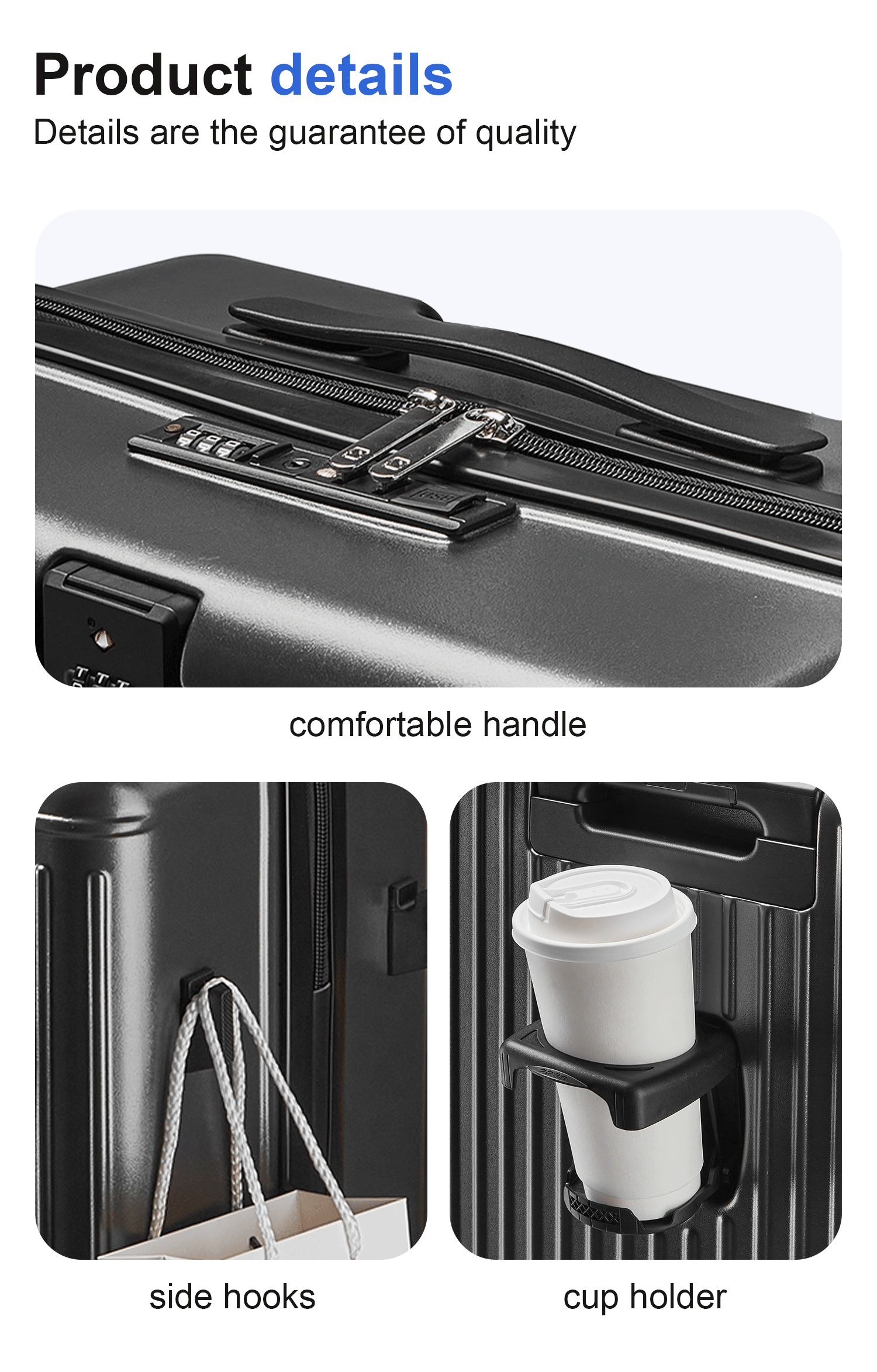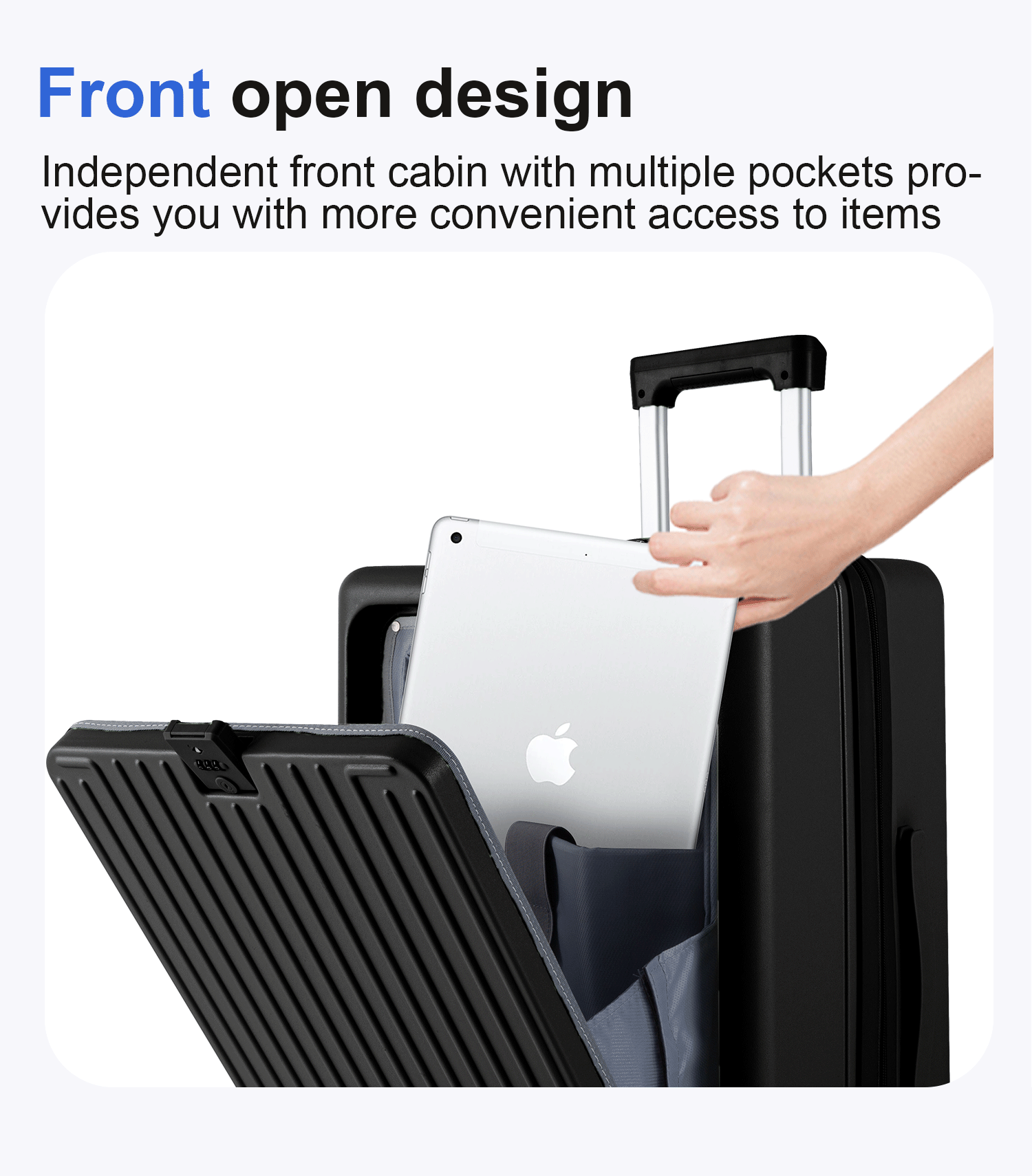 - Front open luggage with pockets