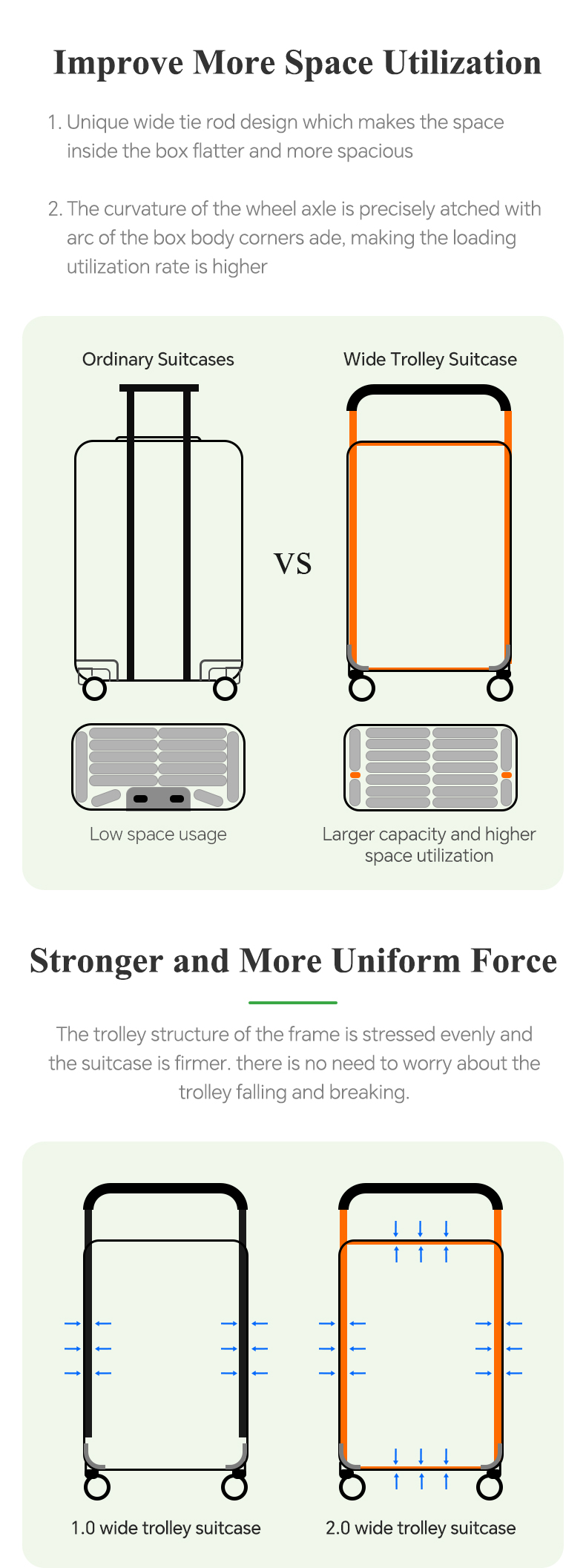 Wide Trolley Lightweight Travelling Luggage Data Sheet